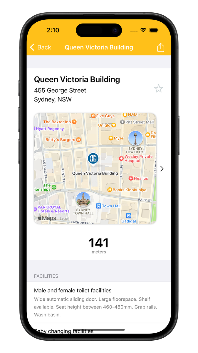 Baby Change: Australia is an app that helps you easily find baby change facilities throughout Australia. It offers both map and list views, showing nearby options with estimated distance, travel time, and directions. You’ll find details like opening hours, parking, toilet availability, and accessibility. It uses data from the Australian National Public Toilet Map and community contributions, ensuring up-to-date information on the go.