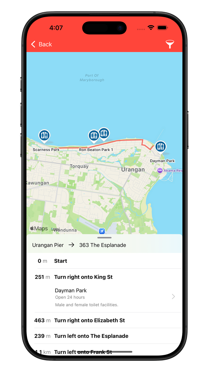 Journey Assistant is a powerful travel planning tool for exploring Australia, ideal for both short trips and multi-stop journeys. It provides detailed directions and facility information along your route, including toilets, baby change stations, caravan dump points, and more.