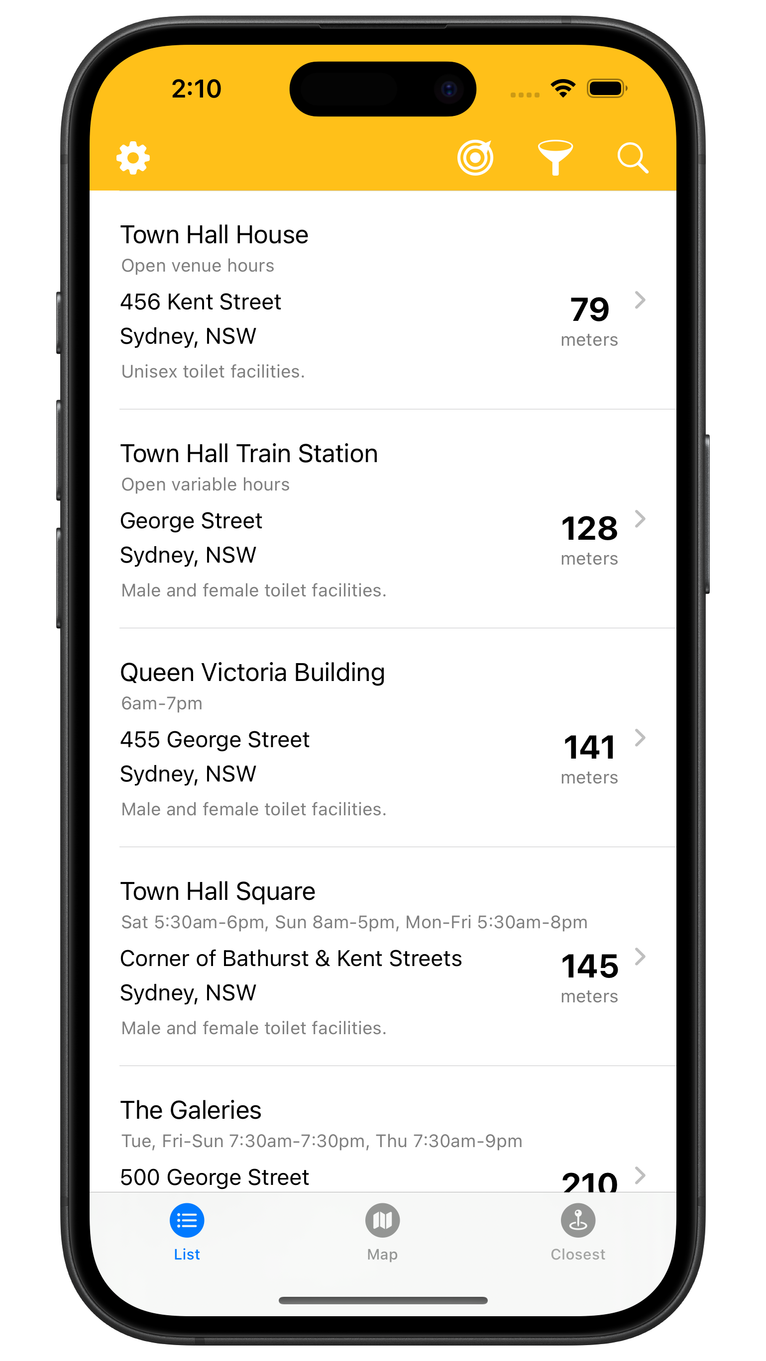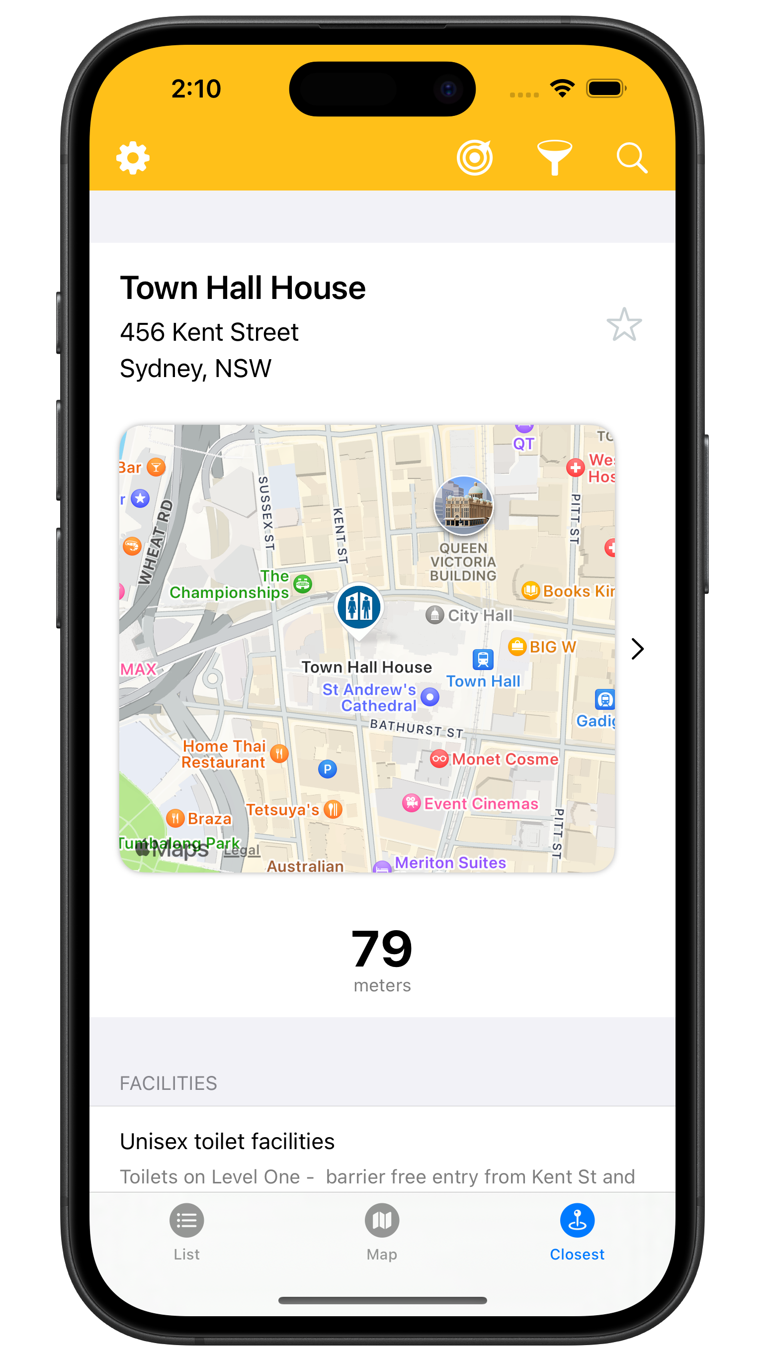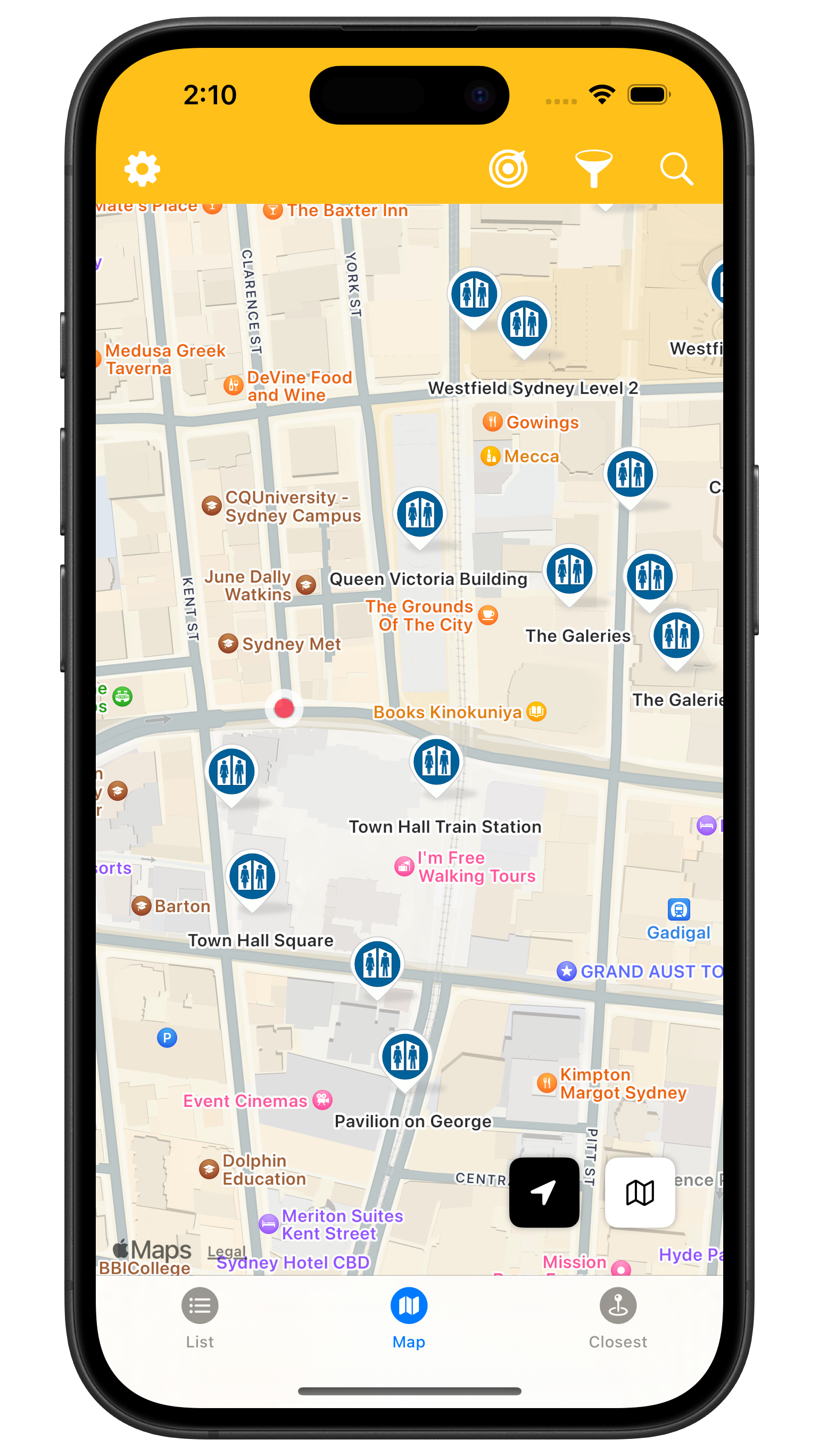 - Find the closest toilet to you.