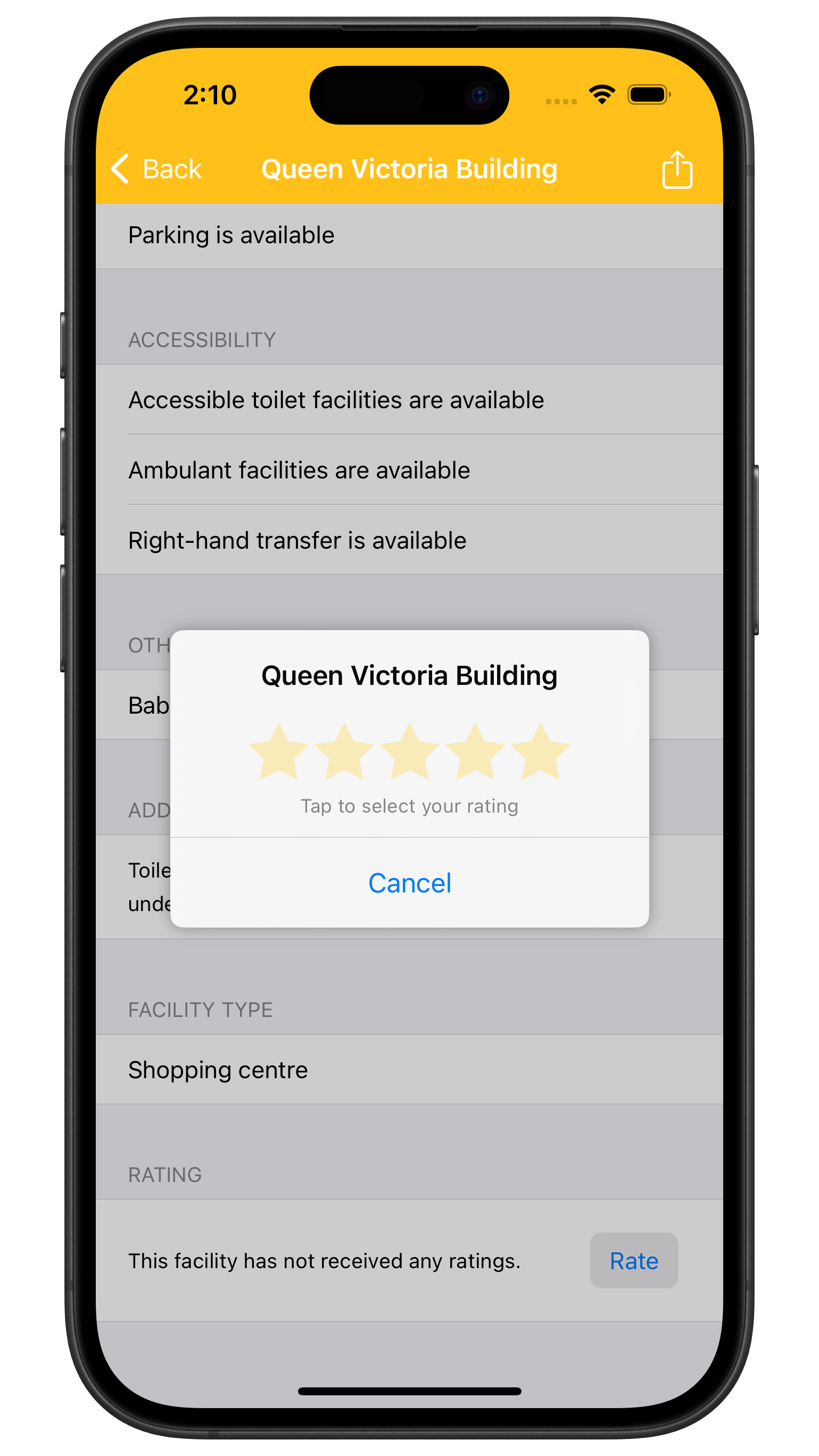 - Add ratings to help others find the best facilities.